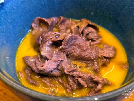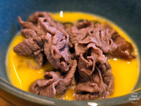 고기에 남은 잔열로 살짝 익혀진 계란과 즐기는