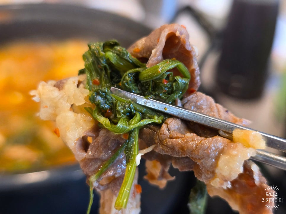 소고기의 맛과 미나리의 향과 식감이