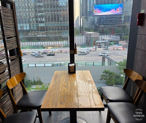 여의도역 사거리가 훤히 보이는 자리인데요,
