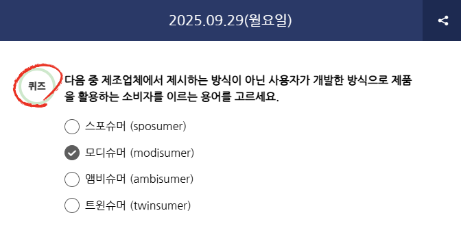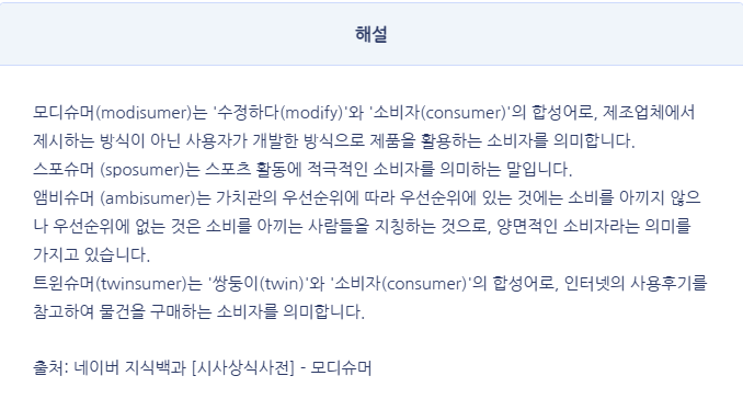 정답은 2) 모디슈머 (modisumer) 입니다.