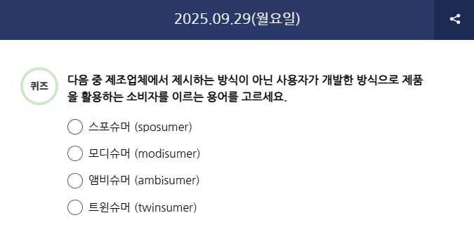 Q) 다음 중 제조업체에서 제시하는 방식이 아닌 사용자가 개발한 방식으로 제품을 활용하는 소비자를 이르는 용어를 고르세요.