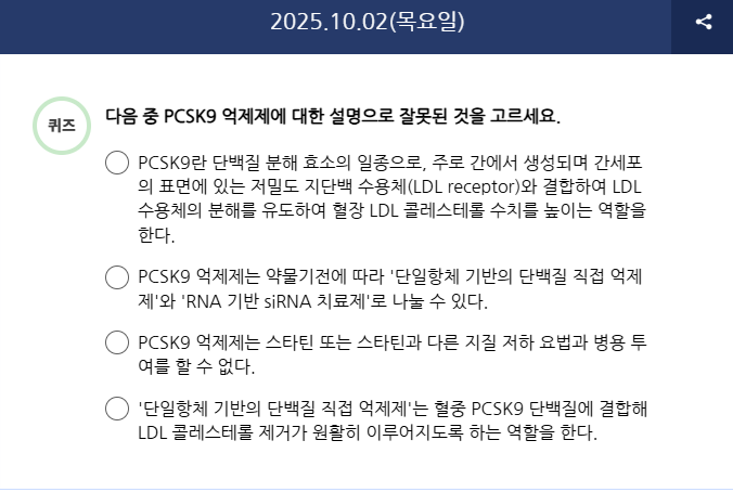 Q) 다음 중 PCSK9 억제제에 대한 설명으로 잘못된 것을 고르세요.