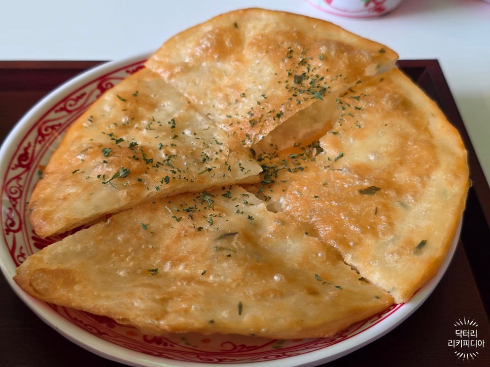 쇼좌빙(중국식 밀전병)과 군만두(3p)를 골랐습니다.