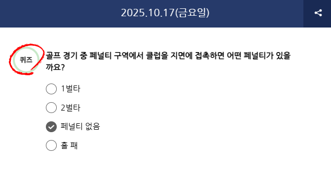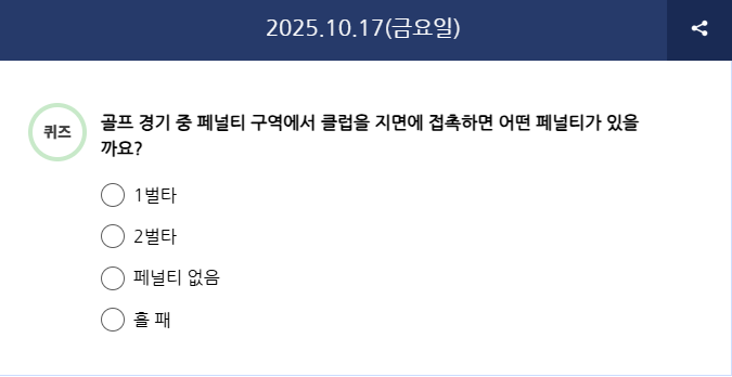 Q) 골프 경기 중 페널티 구역에서 클럽을 지면에 접촉하면 어떤 페널티가 있을까요?