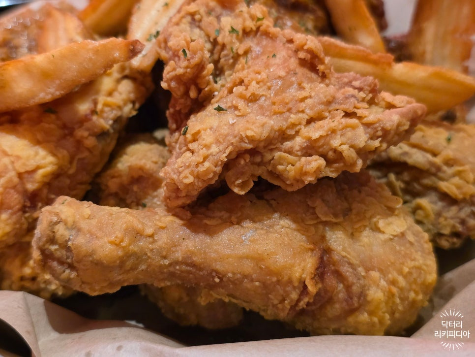 엄청 크리스피 해보이는 후라이드 치킨입니다.
