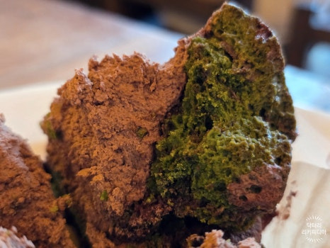 : 진한 말차맛이 나는 스콘에 진한 초코크림이 한가득...