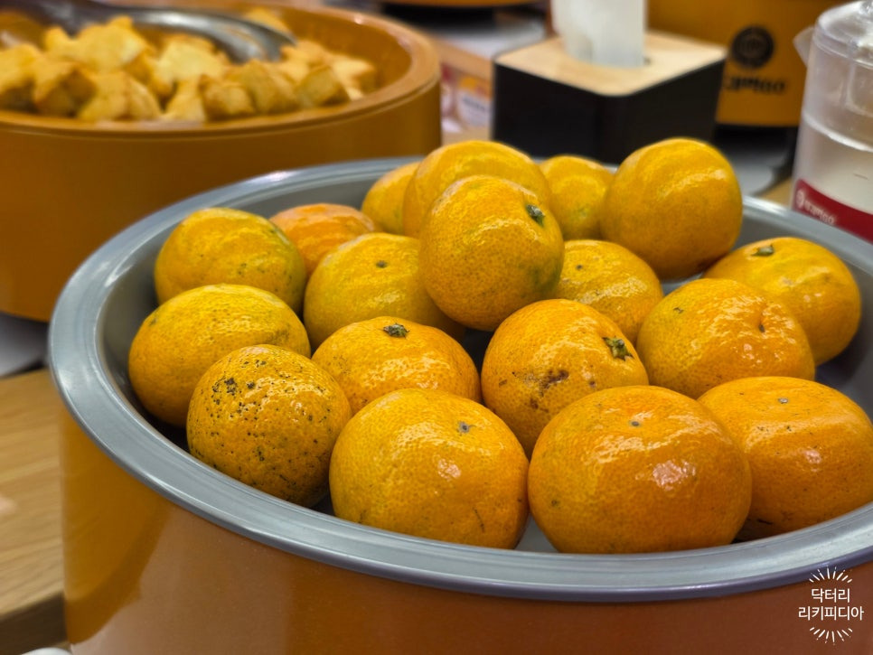 샤인머스캣, 귤 등 신선한 과일 후식도 많아서