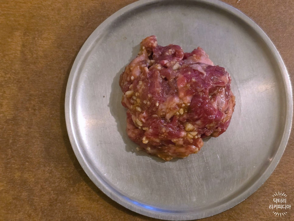 : 여러가지 과일로 마리네이트 한 달지 않은 양념 소갈비살,