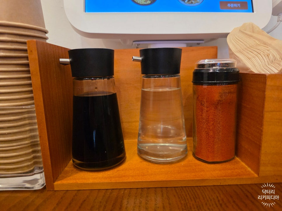 테이블에는 간장, 식초,