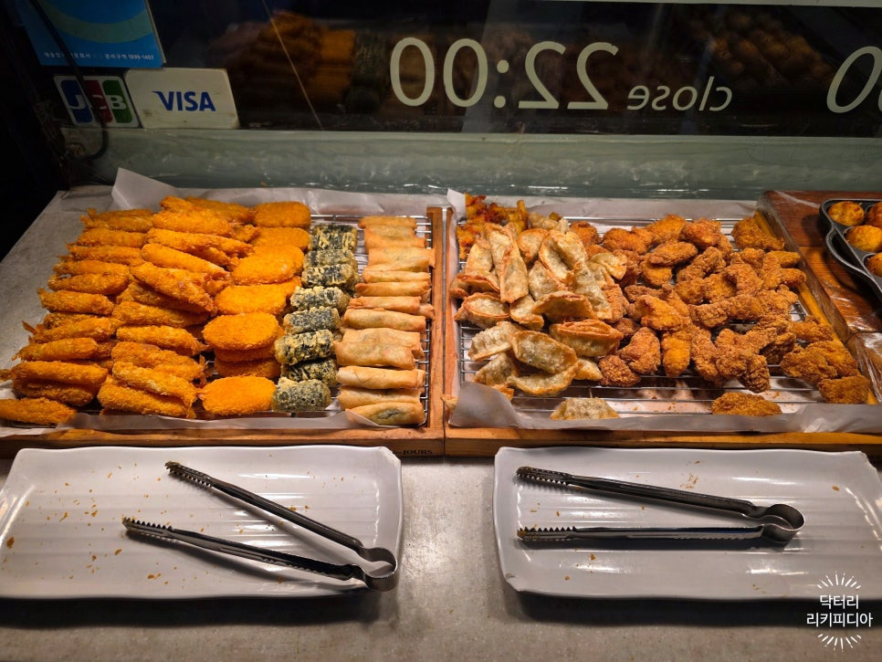 : 각종 튀김, 타코야키, 떡볶이, 샐러드 등