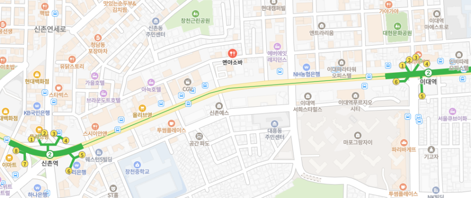 2호선 이대역과 신촌역의