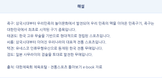 Q) 다음 중 우리나라에서 기원한 스포츠 종목을 모두 고르세요.