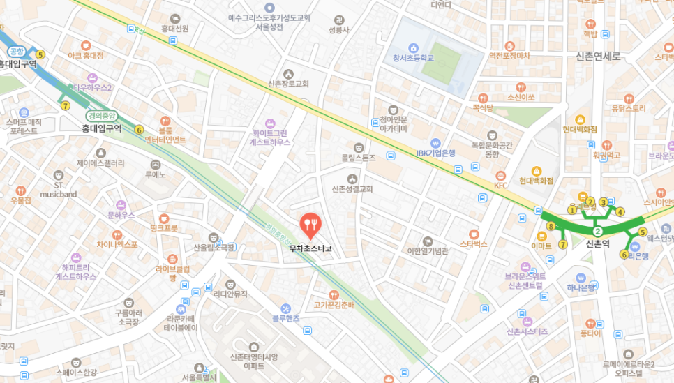 2호선 신촌역 중간쯤에 위치해 있구요,