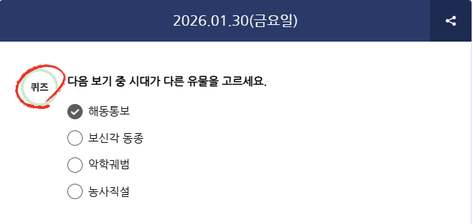 Q) 다음 보기 중 시대가 다른 유물을 고르세요.