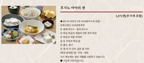 출처 : 교토푸 후지노 홈페이지(구글 자동 페이지 번역기 사용)