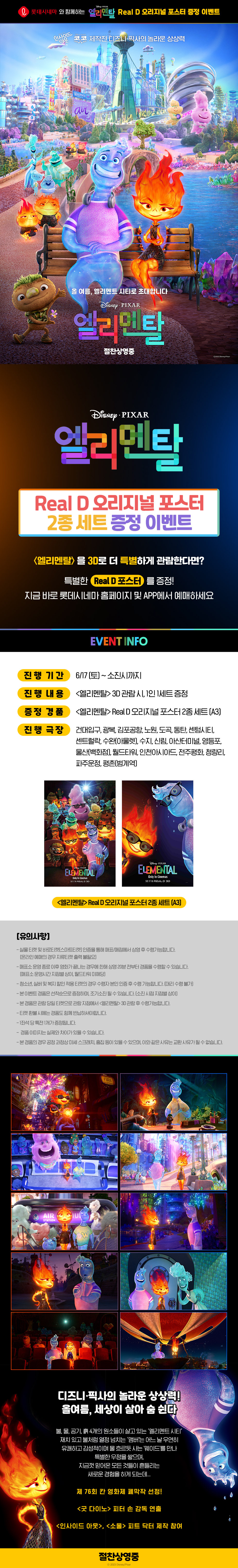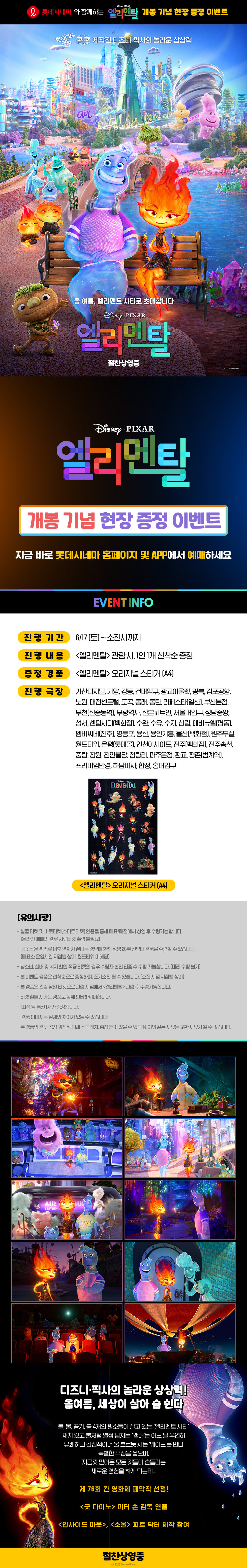 또 키즈카페를 갈까? 야외활동을 할까? 고민하다가 디즈니-픽사의 새 애니메이션인 "엘리멘탈(ELEMENTAL)"이 개봉한다고 하여 롯데시네마 에비뉴엘에서 보기로 했다.