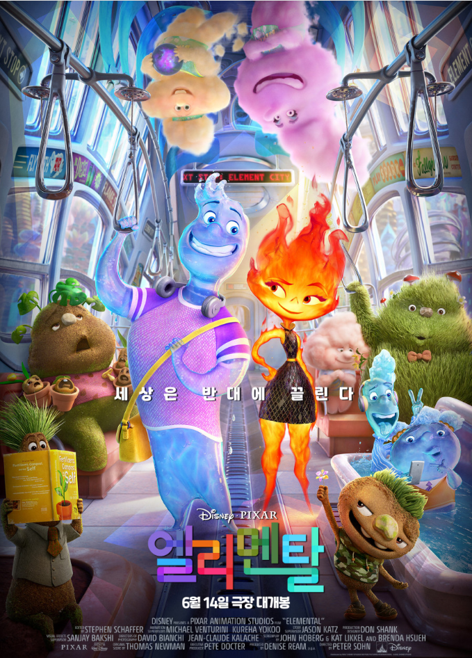 물, 불, 공기, 흙(탈레스의 4원소설? 제목 자체가 엘리멘탈, 원소 이긴 하다) 4개의 원소들이 모여사는 '엘리멘트 시티'에 불 가족(주인공인 엠버-불-의 부모님)이 이사오게 되고, 화끈한 성격의 엠버(불)와 감성적이며 물흐르듯 사는 웨이드(물)이 만나 우정과 사랑을 쌓으면 벌어지는 일들을 담았다.