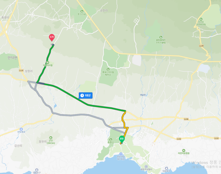 중문 관광단지에서 10km 정도이며, 15분 정도 걸립니다.