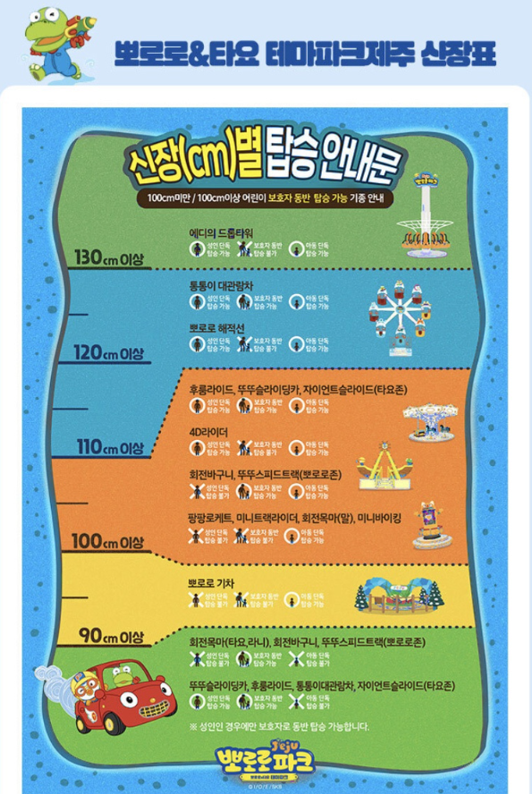 뽀로로테마파크 제주 어트랙션 및 신장제한