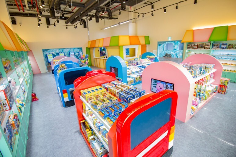 캐릭터샵에는 뽀로로와 타요 캐릭터로 된 각종 장난감, 학용품, 기념품 등을 팔고 있습니다.