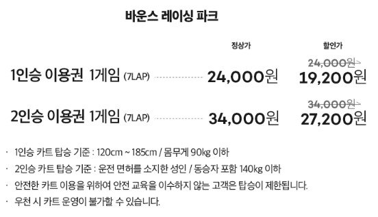 오크밸리 놀이동산 옆에는 바운스 레이싱 파크가 있는데, 날씨가 너무 덥기도 하고 아이들이 많이 어려서 체험해보지는 않았습니다.