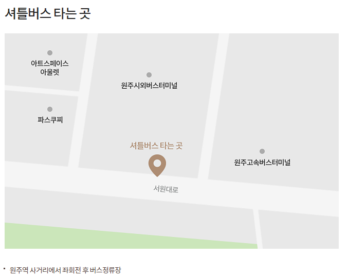 대중교통을 이용하신다면 서울에서 고속버스를 타고 원주시외버스터미널이나 고속버스터미널에서 내리셔서 셔틀버스를 타고 오실 수 있습니다.