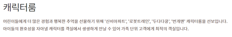 빌리지센터 1층에는 바운스파크(추후 포스팅 하려고 합니다)와 스포키 프라이빗 워터룸(어린 아이들을 위한 프라이빗한 작은 수영장이라고 보시면 될 것 같습니다.) 이 있고, 각종 인형뽑기 기계가 있는 곳, 오락실, 볼링장, 노래방, 미스터피자 & 교촌치킨, 용우동 & 파육장, 효자동 설렁탕, 스타벅스, GS 25 편의점이 있습니다.