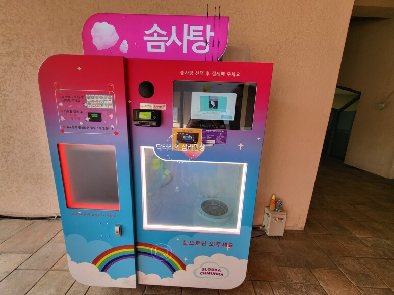 중앙광장에서 빌리지센터로 들어가는 입구에 솜사탕 만드는 기계가 있더라구요. 가격은 5000원인데(카드 결제도 됩니다.) 기계가 솜사탕을 열심히 만들어 줍니다.(모양은 4개 정도 있는데 고를 수 있었습니다.)