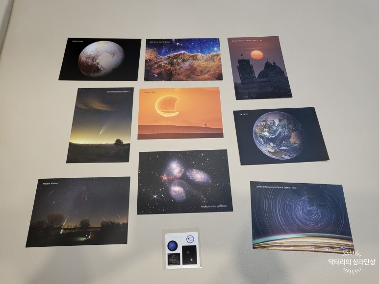 명찰을 반납하면 우주사진 엽서와 스티커를 받을 수 있습니다.