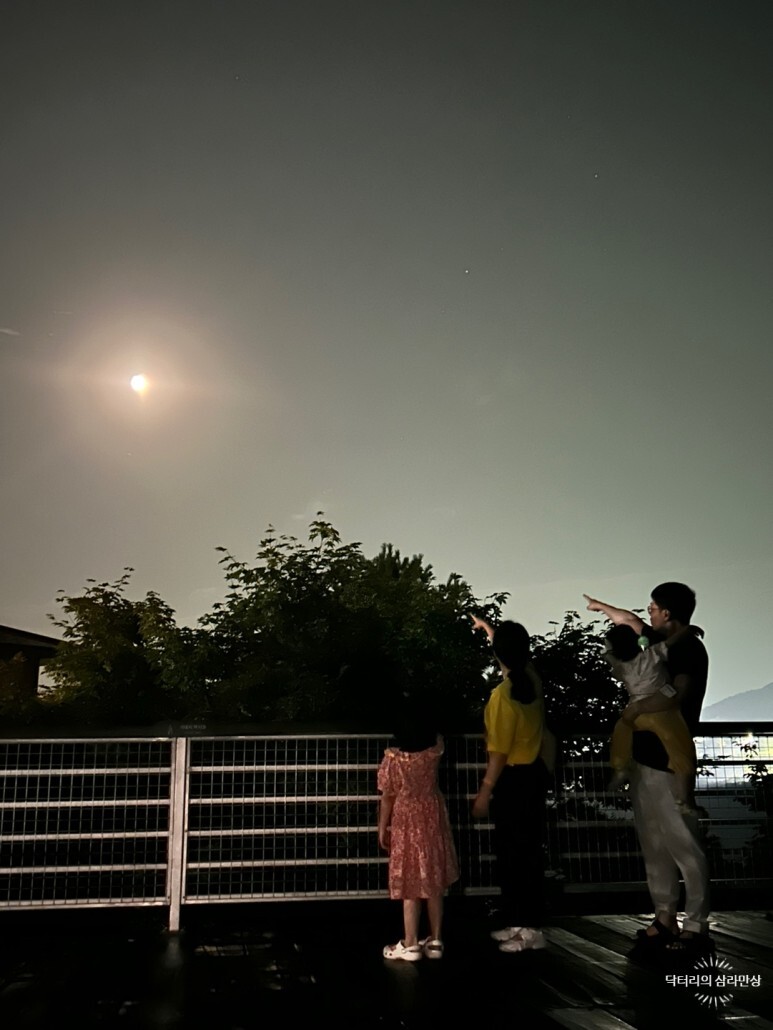 가족사진은 천문교실 선생님들이 찍어주시구요. 달이 너무 밝은 날이라 별들은 잘 안 나왔네요. 달이 무슨 조명처럼 밝아서요.