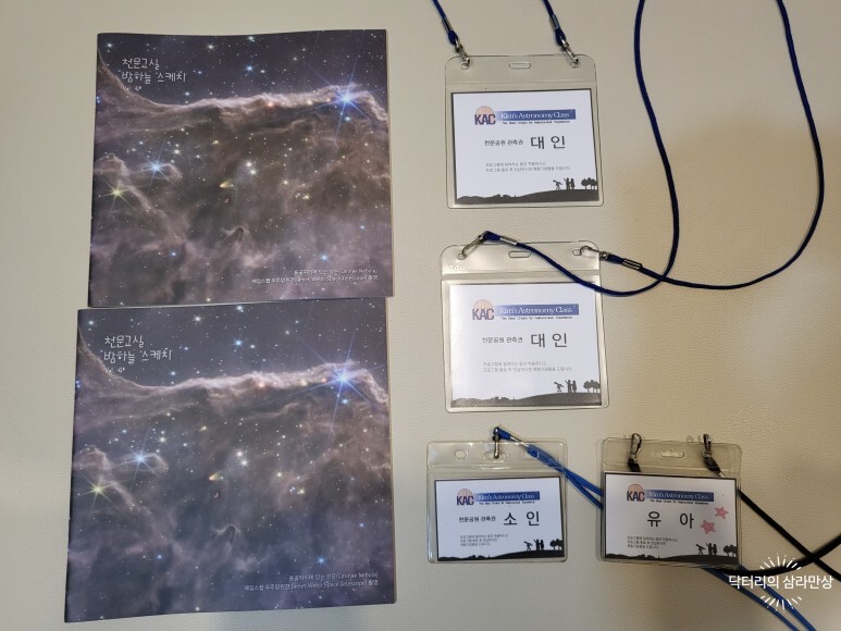 예약을 하고 나면 달과 천체, 그리고 별자리에 대한 교육 책자(천문교실 밤하늘 스케치)와 천문공원 관측권 명찰을 받으실 수 있습니다.