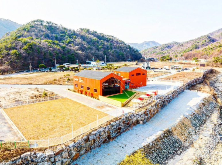 멀리서도 눈에 띄는 주황색의 건물이 인상적입니다.