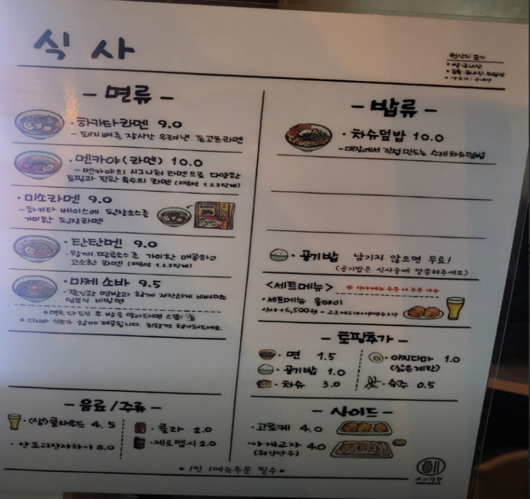 굳이 멘카야 라멘을 드시러 공덕을 방문하실 필요까지는 없다고 생각됩니다만, 인근에 들르신다면 한번 들러보셔도 후회없는 선택이 되실 것 같습니다.