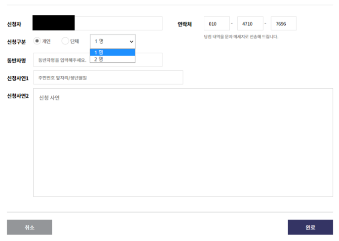 동반자 이름을 적어주시구요(동반자의 신분증 확인은 하지 않습니다.)