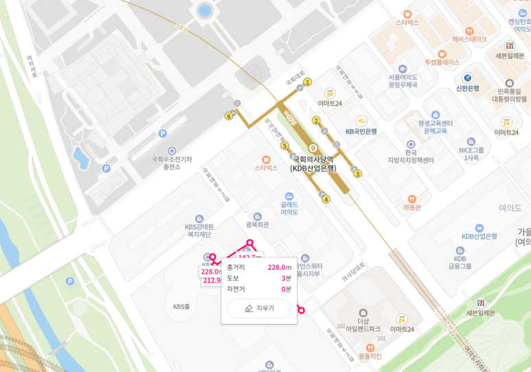 - 지하철 : 9호선 국회의사당역이 가장 가깝구요. 4번 출구에서 도보 3분 거리 정도입니다.