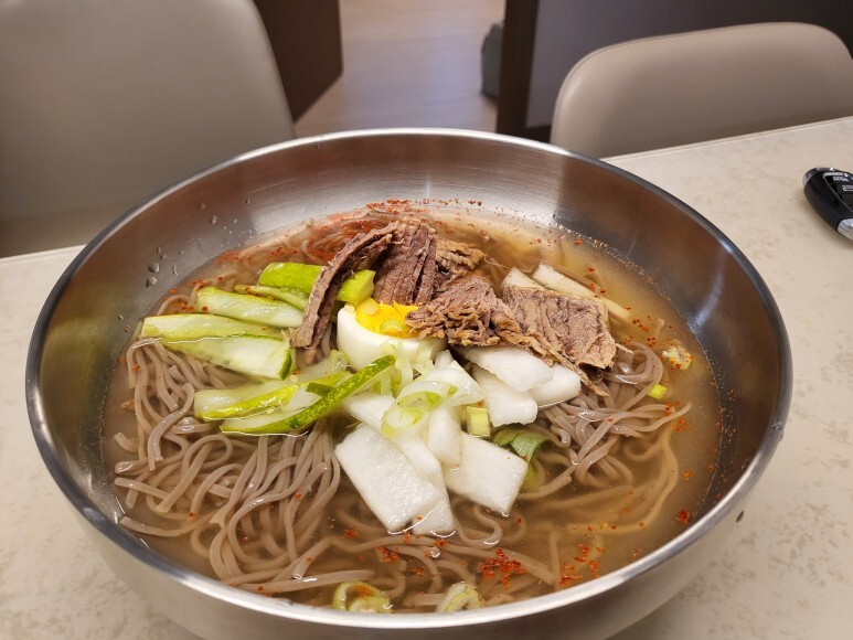 핸드메이드 평양냉면의 맛은 슴슴하니 괜찮습니다.(원래 평양냉면이 그 맛에 먹는거니까요.)