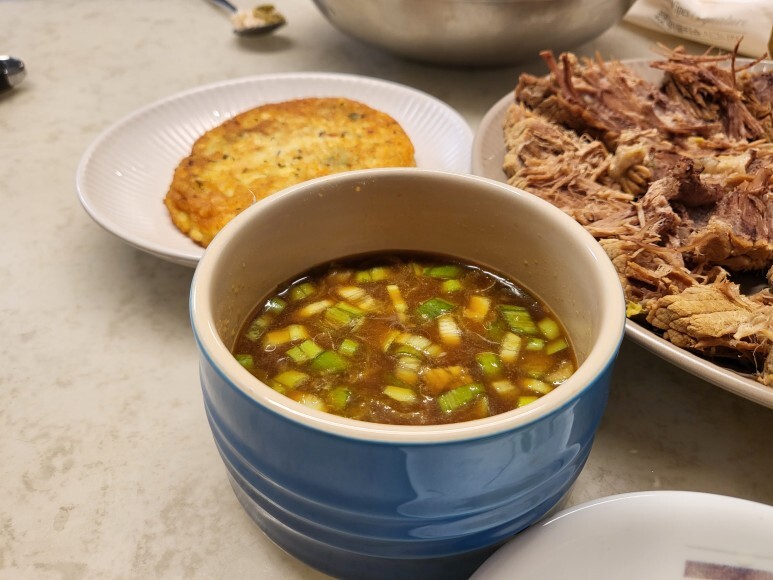 둘째날에는 찌고 난 후 써는 바람에 양지가 다 찢어져 버렸습니다. 녹두전은 같이 먹으려고 아내가 사왔네요.