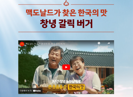 맥도날드는 국내 농가를 지원하기 위해 각 지역의 특산물로 만든 시즌버거들을 출시하고 있는데 그 중 하나라고 하네요.
