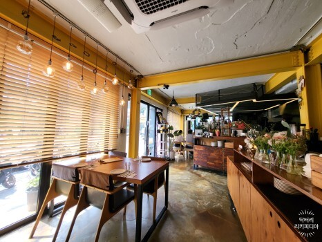 2층짜리 건물의 1층에 위치해있고, 노란색 페인트로 칠해진 외관이 눈에 확 들어옵니다.