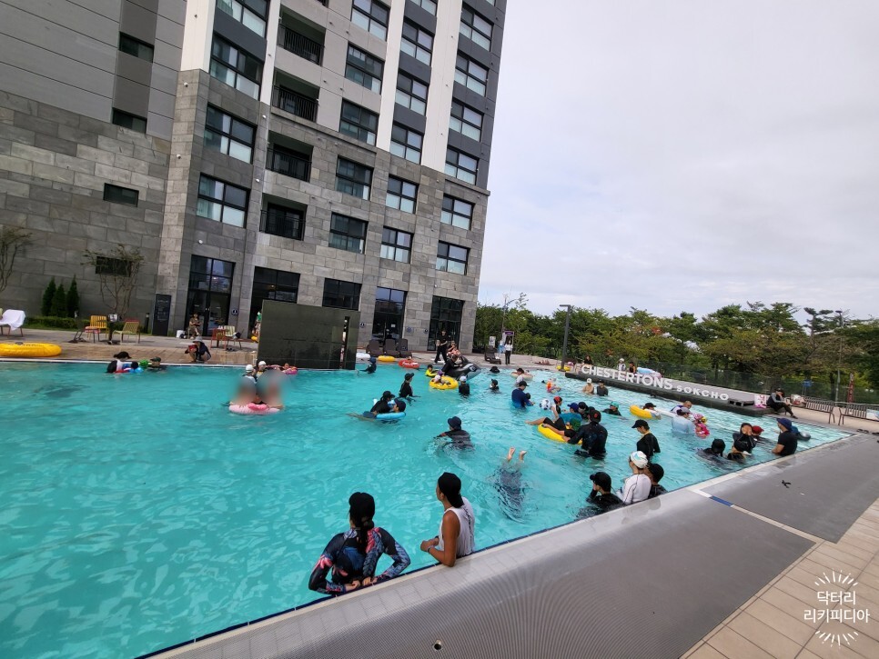 얼른 짐을 풀고 1층에 있는 수영장으로 갔습니다.